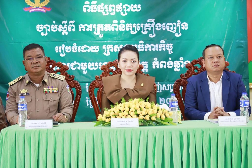 ខេត្តកំពង់ឆ្នាំង}÷នៅរសៀលថ្ងៃទី២៥ ខែមិនា ឆ្នាំ២០២៦លោក ជា សុខរិទ្ធិ អភិបាលរងខេត្តតំណាងឯកឧត្តម ស៊ុន សុវណ្ណារិទ្ធិ អភិបាលខេត្ត រួមជាមួយលោកជំទាវ វី ស្រីពៅ រដ្ឋលេខាធិការក្រសួងអធិការកិច្ច និងលោកវរ:សេនីយ៍ទោ សួន សារិន តំណាងអាជ្ញាធរជាតិប្រយុទ្ធប្រឆាំងគ្រឿងញៀន អញ្ជើញជាគណ:អធិបតីក្នុងពិធីផ្សព្វផ្សាយច្បាប់ស្តីពីការត្រួតពិនិត្យគ្រឿងញៀន នៅសាលាស្រុកបរិបូណ៍។