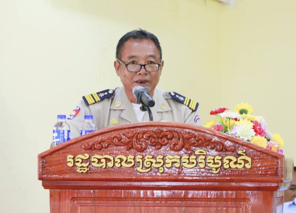 លោកជំទាវ វី ស្រីពៅ រដ្ឋលេខាធិការក្រសួងអធិការកិច្ច និងលោកវរ:សេនីយ៍ទោ សួន សារិន តំណាងអាជ្ញាធរជាតិប្រយុទ្ធប្រឆាំងគ្រឿងញៀន អញ្ជើញជាគណ:អធិបតីក្នុងពិធីផ្សព្វផ្សាយច្បាប់ស្តីពីការត្រួតពិនិត្យគ្រឿងញៀន នៅសាលាស្រុកបរិបូណ៍