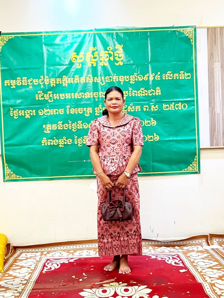 {ខេត្តកំពង់ឆ្នាំង}÷ អ្នកគ្រូ ឌី សោភ័ណ្ឌ តំណាងអតីតសិស្សមធ្យមសិក្សាទុតិយភូមិឆ្នាំសិក្សា ១៩៩៤ នៃវិទ្យាល័យព្រះបាទសុរាម្រិតខេត្តកំពង់ឆ្នាំង ក្នុងកម្មវិធីជួបជុំមិត្តភក្កិអបអរសាទរបុណ្យចូលឆ្នាំថ្មីប្រពៃណីជាតិខ្មែរ ថ្ងៃអង្គារ១២ រោច ខែចេត្រ ឆ្នាំមមី អដ្ឋស័ក ព.ស.២៥៧០ ដើម្បីគោរពវិញ្ញាណក្ខន្ធបង្សុកូលឧទ្ទិសបុណ្យកុសលជូនវិញ្ញាណក្ខន្ធអតីតកងទ័ពជាតិ អតីតវីរៈនគរបាលព្រំដែន ដែលបានពលី ក្នុងបុព្វហេតុការពារទឹកដី ក្នុងសង្គ្រាមថៃឈ្លានពាន ការតបគុណគ្រូ និងទទួលទានអាហារសាមគ្គី។